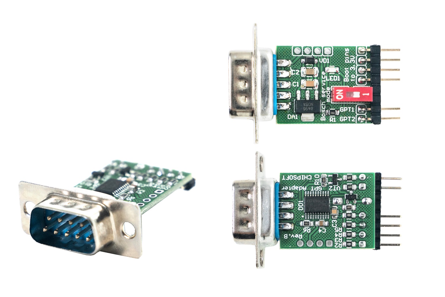 The adapter also has 4 boot pins for 3.3V via the 1K resistor (used for Tricore ECUs). ChipLoader, Tricore software module, CHIPSOFT J2534, CHIPSOFT OBD2 BreakOut Box, CHIPSOFT GPT Adapter are a complete solution to work with various ECUs based on Tricore processors.
