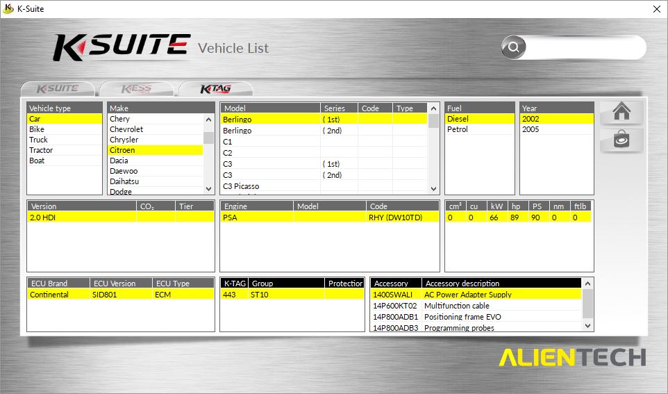 - FEATURES: The vehicles’ list is always at hand, more complete and detailed. Thousands of notes and information. The search option in K-Suite is easier and quicker, one single spec is enough.