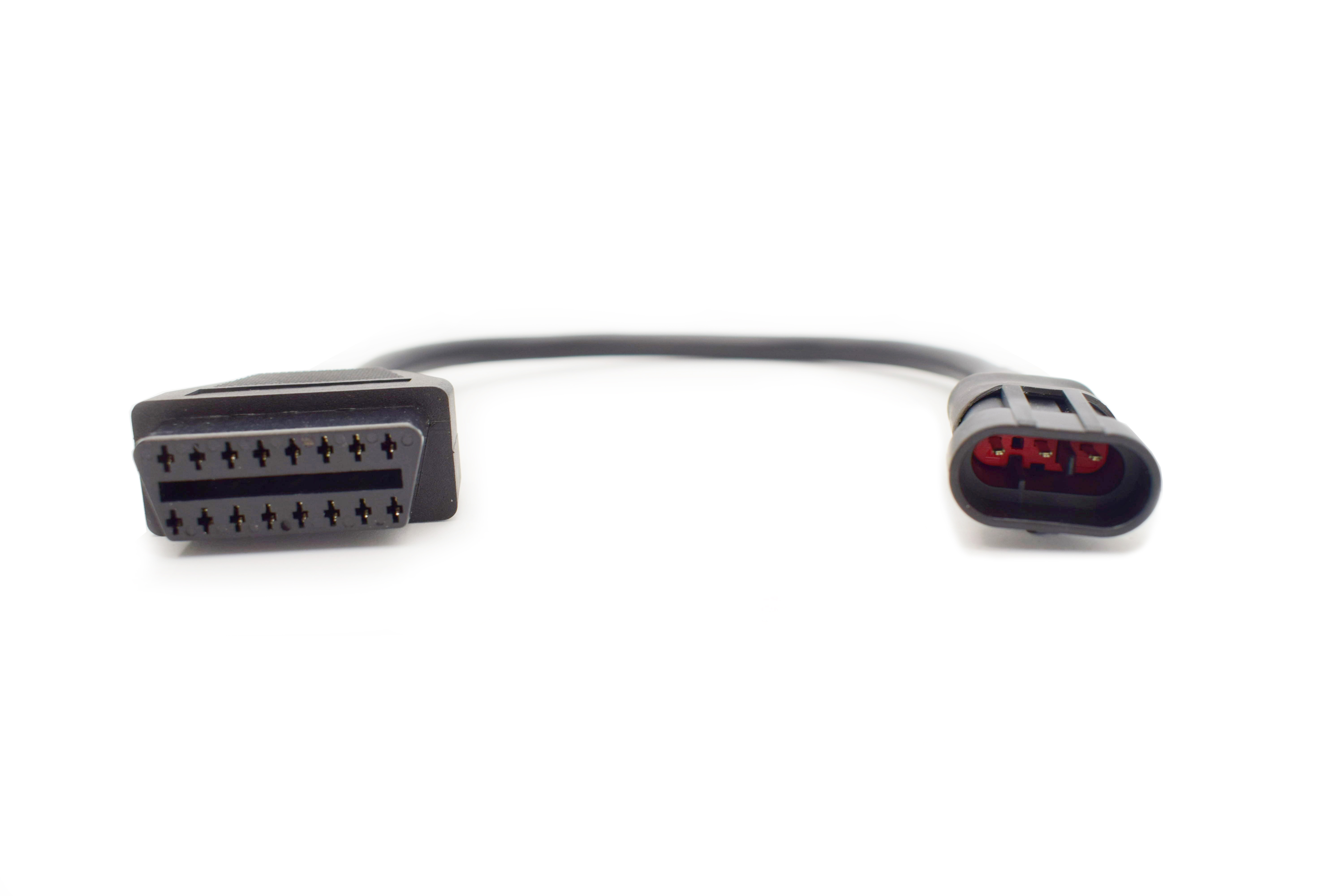 CF Moto 3pin-to-OBD2 adapter is designed to connect OpenPort 2.0 or any device with built-in OBD2 Male to the diagnostic connector of CF Moto vehicles. It allows to perform reflash of the vehicles with Bosch MSE3.0 and Delphi MT05.2 ECUs with no need to get ECU on the bench.
