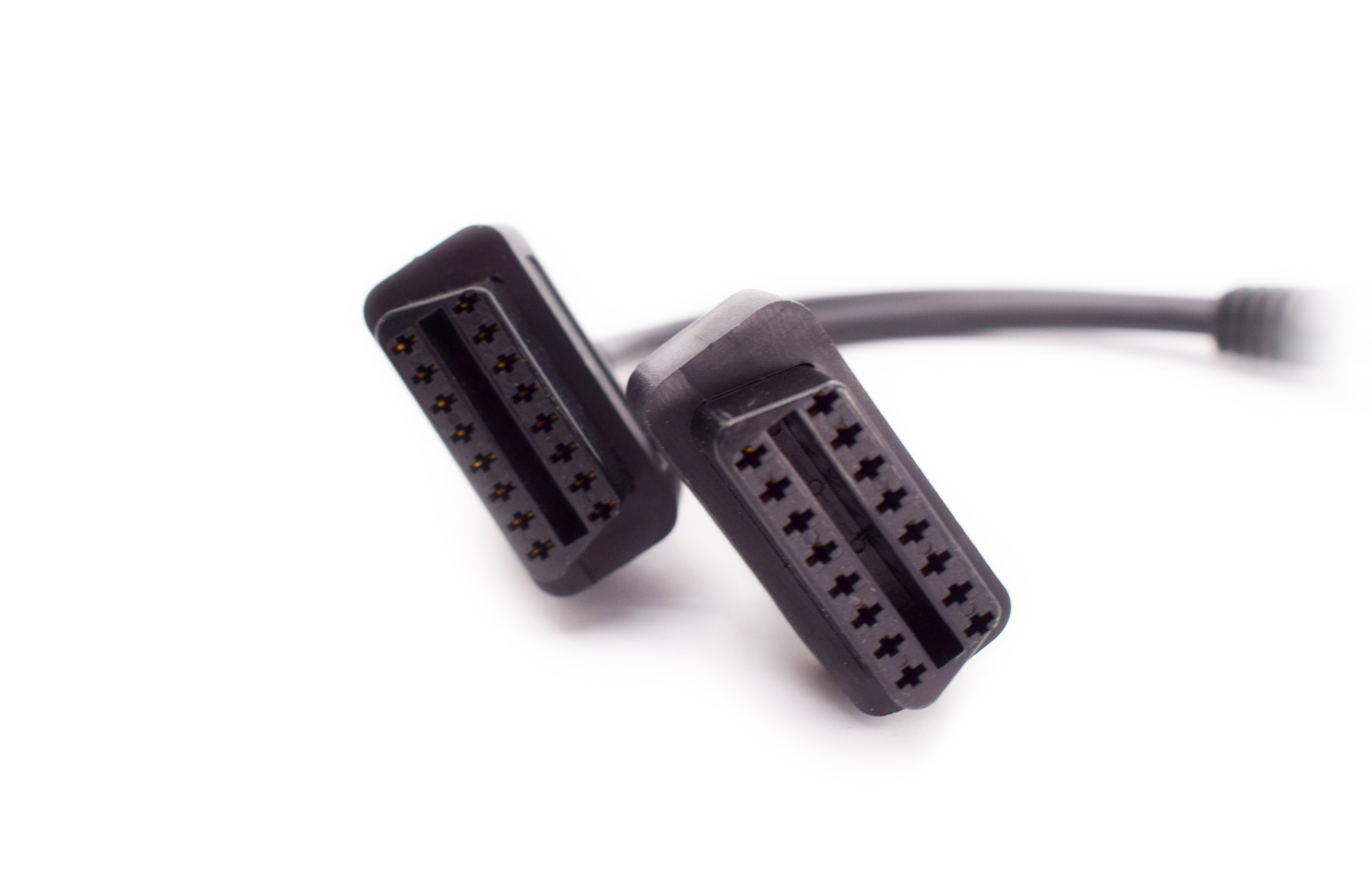 It allows to connect two diagnostic devices to one diagnostic plug. Pinout: 16 contacts pit-to-pin. Length: 30 cm.