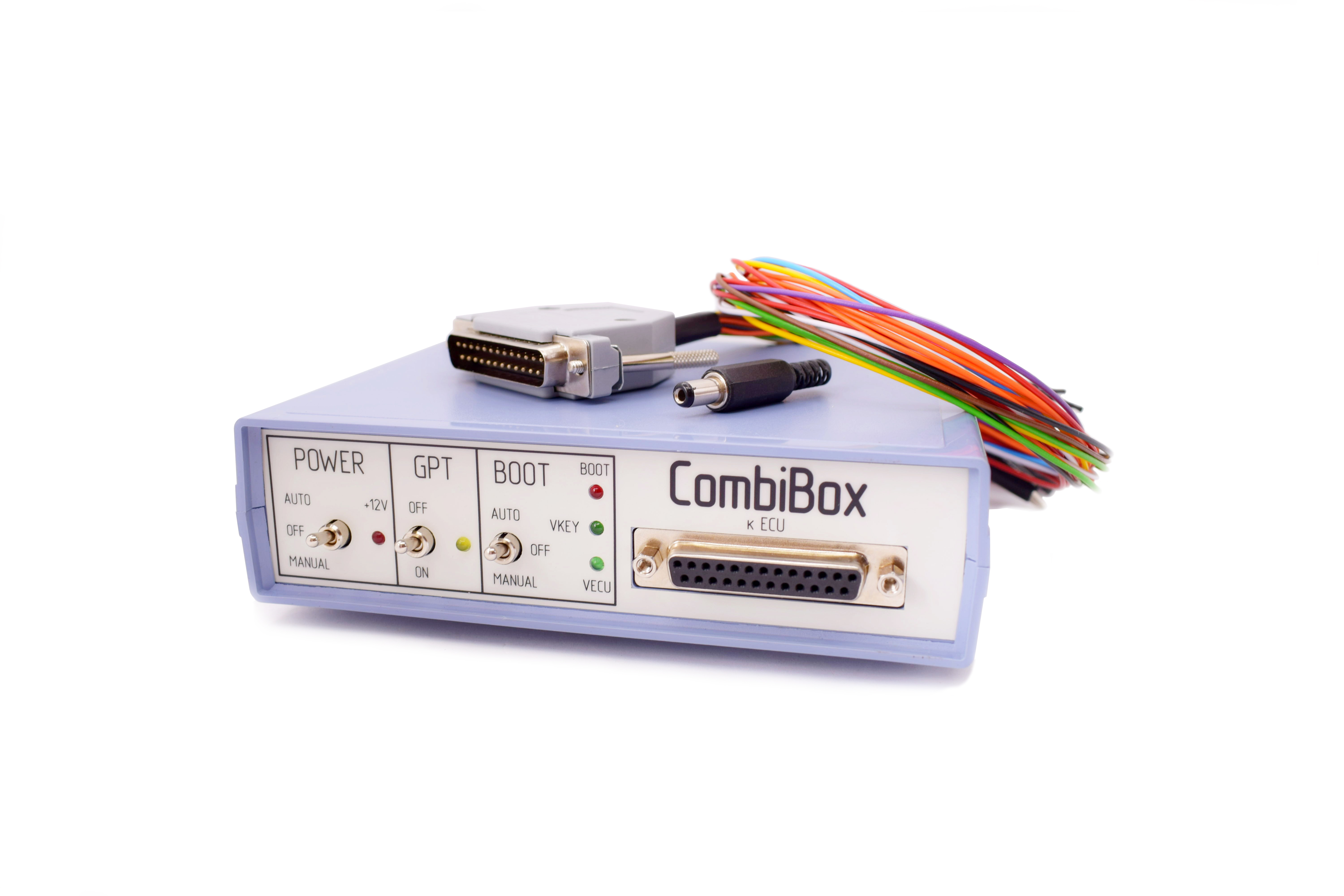 CombiBox is designed to connect an ECU to Combiloader and DIALink adapter on the bench and to switch power and GPT1, GPT2 signals, and to form BOOT, CNF1 signals.