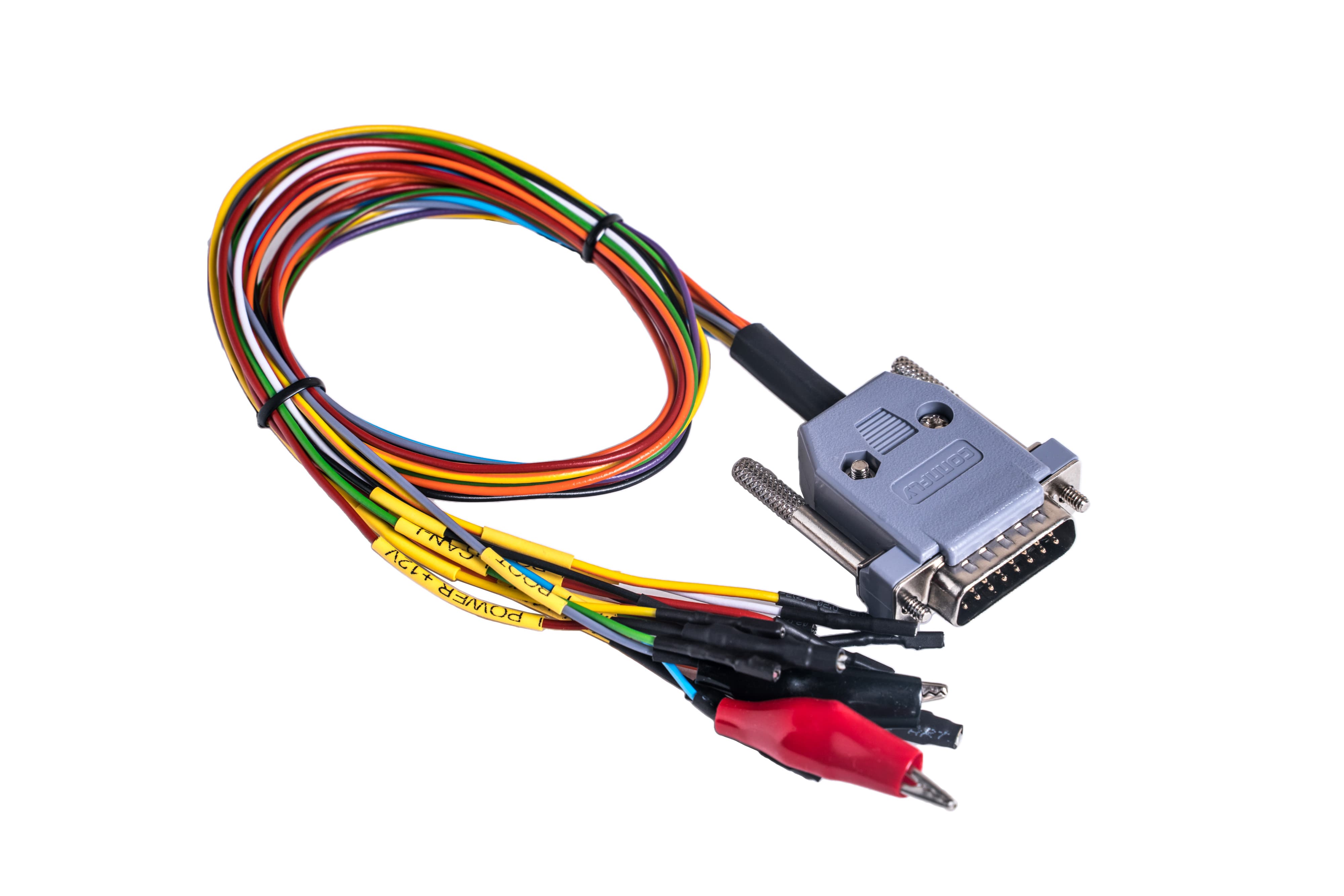 On the front panel of the device there is a DB-15 plug designed to connect to the ECU using a universal cable. All cable wires have appropriate markings to connect them correctly.