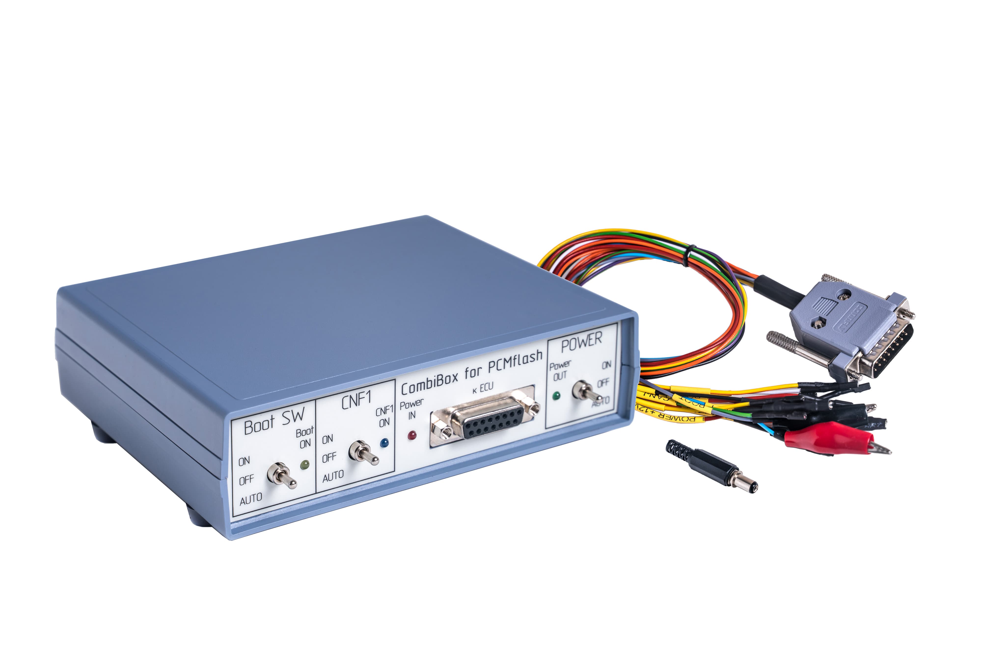 CombiBox is designed to connect an ECU to PCMflash and a J2534 device on the bench and to switch power and GPT1, GPT2 signals, and to form BOOT, CNF1 signals. When used with Scanmatik 2 PRO CombiBox for PCMflash allows to form GPT1, GPT2 signals necessary to work with Module 53 and Module 71, and future modules.