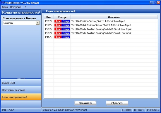 - Bosch M(E)17.9.7. Only ECUs FLASH memory writing of VAZ/UAZ vehicles through the OBDII;