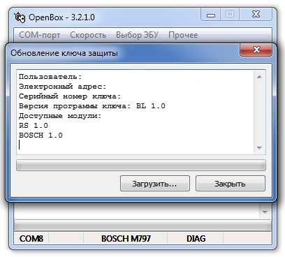 The program works with any K-Line adapter supporting 57600bps speed. To work with EDC7 / MS6.1 / EDC17ECUs you need a 24V K-Line adapter. To work with BOSCH 7.9.8 and M74 ECU via CAN, you need a Tactrix Openport 2.0 adapter.