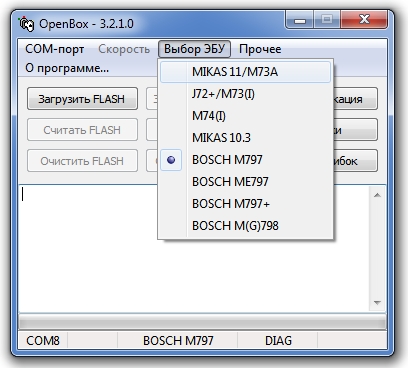 For ZAZ and Chinese vehicles with BOSCH М7.8. Writing FLASH via OBDII. FLASH/EEPROM reading and writing of the controller is BSL.