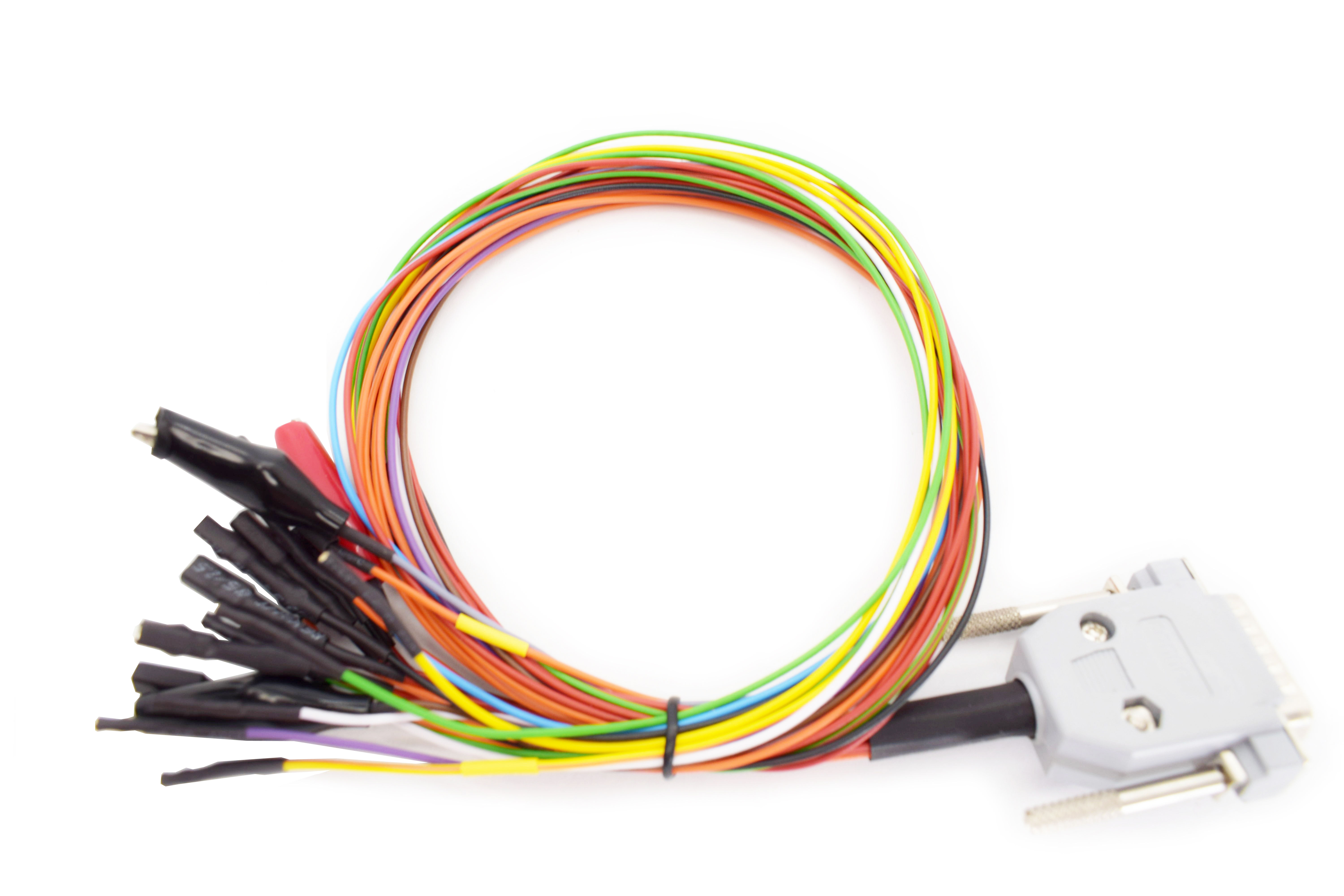 The universal cable DB15-PIN allows to connect to various ECU connectors, it is a better equivalent of 14P600KT02. GPT1 and GPT2 of the same colour are labelled and brought out together with additional CAN-H CAN-L. The cable has an extra pair of pins on the VECU chain and an extra pair of pins on the VKEY chain which allows to apply up to 8 supply voltages (four small pins and 4 big ones).