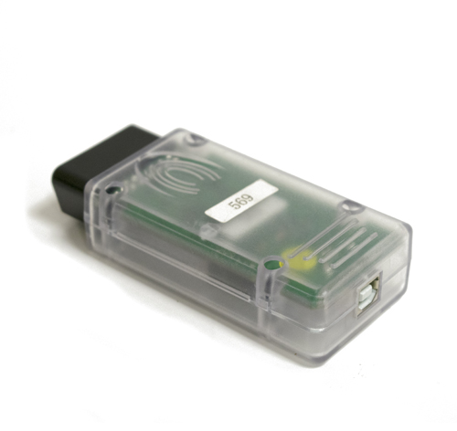 Built-in multiplexer Galvanic separation and short-circuit protection Adapter microcode USB updates The adapter is built in the OBD-II connector case.
