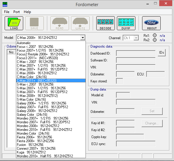Fordometer 2 is a multifunctional device intended for work with Ford vehicles dashboards. It can function through two independent CAN bus lines. Connection to the vehicle systems is conducted through the diagnostic link connector. It allows working with all Ford vehicles dashboards based on FREESCALE 9S12**** (9S12H128, 9S12H256, 9S12XHZ512) and NEC V850+95320 processors.